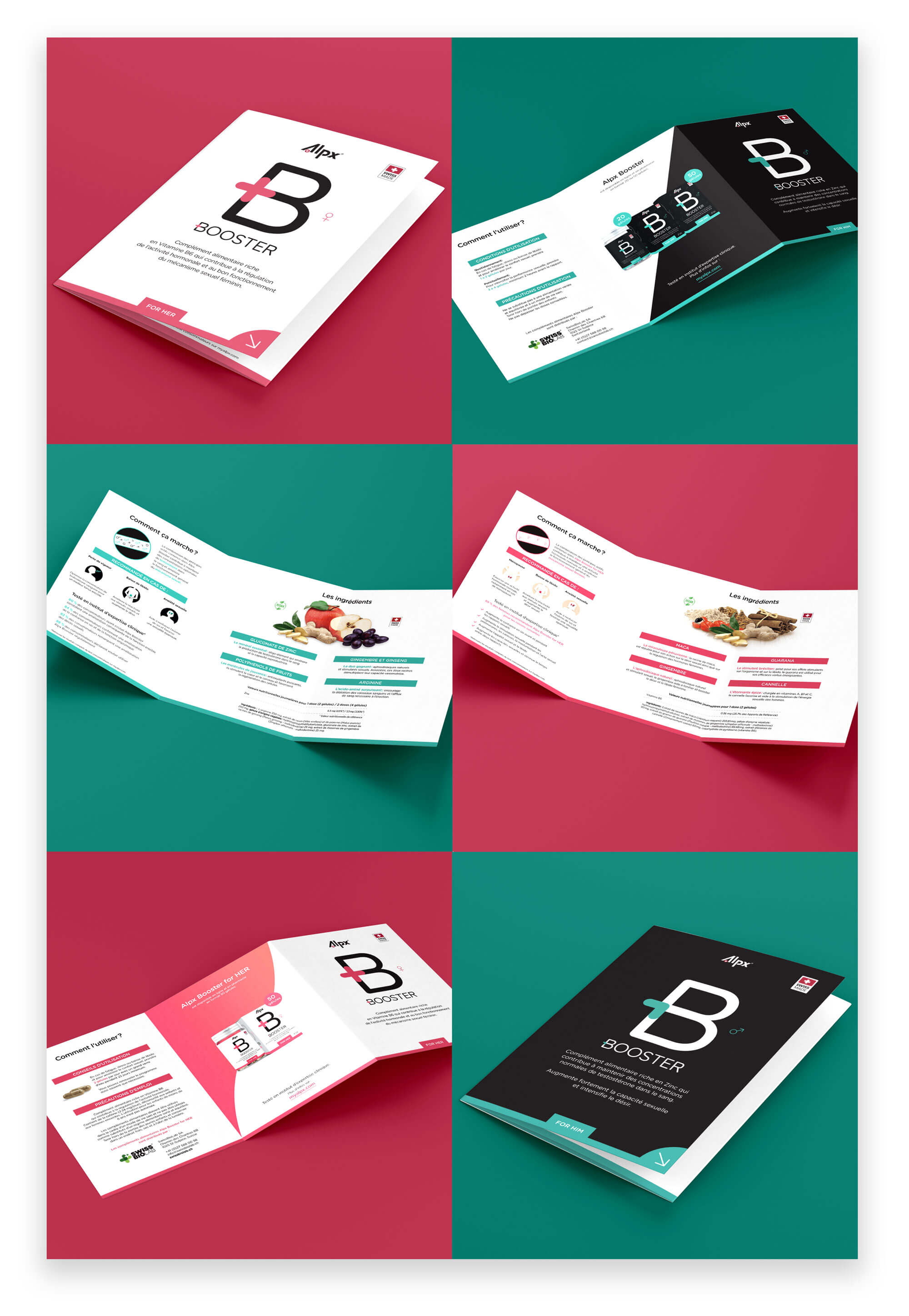 Création de dépliants de présentations produits pour la gamme Booster du laboratoire SwissBioLab.