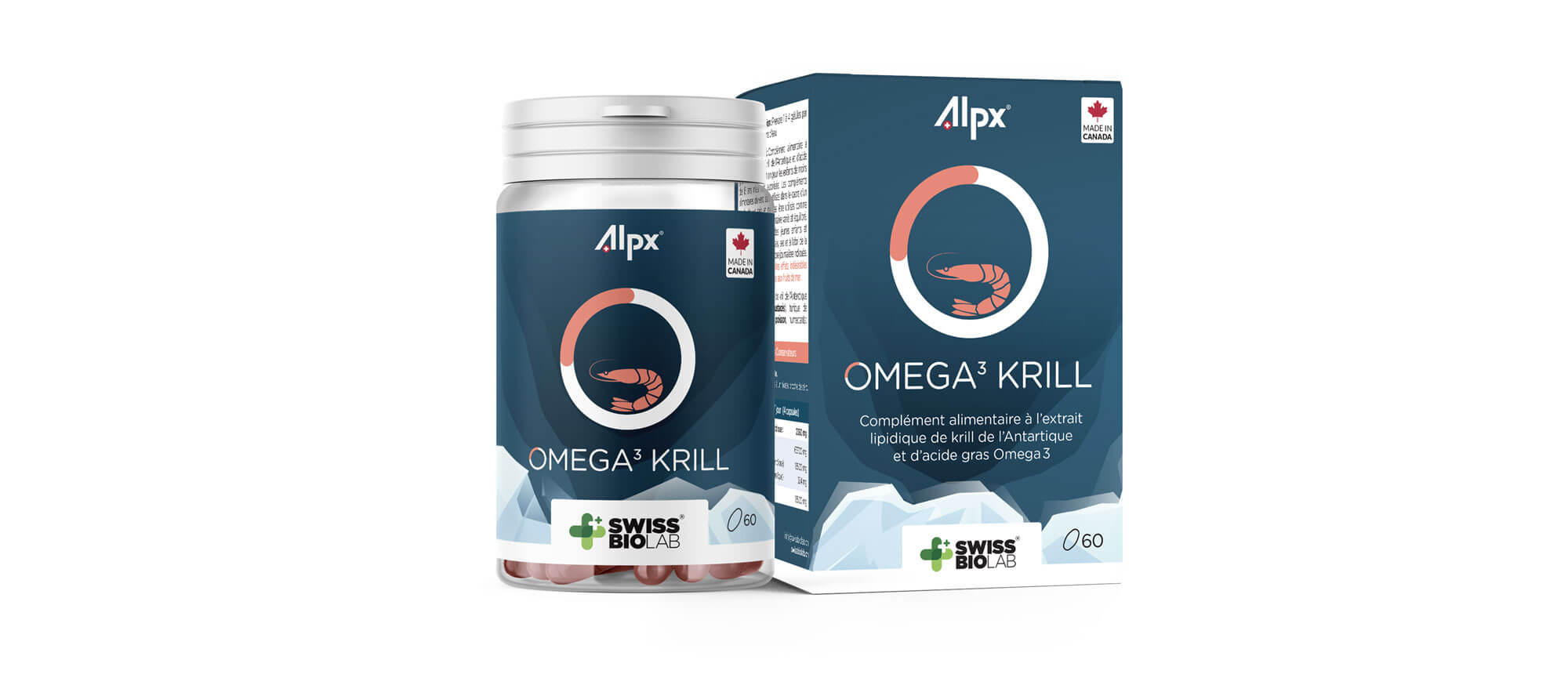 Création du logo et du packaging produits pour la gamme Omega Krill du laboratoire SwissBioLab.