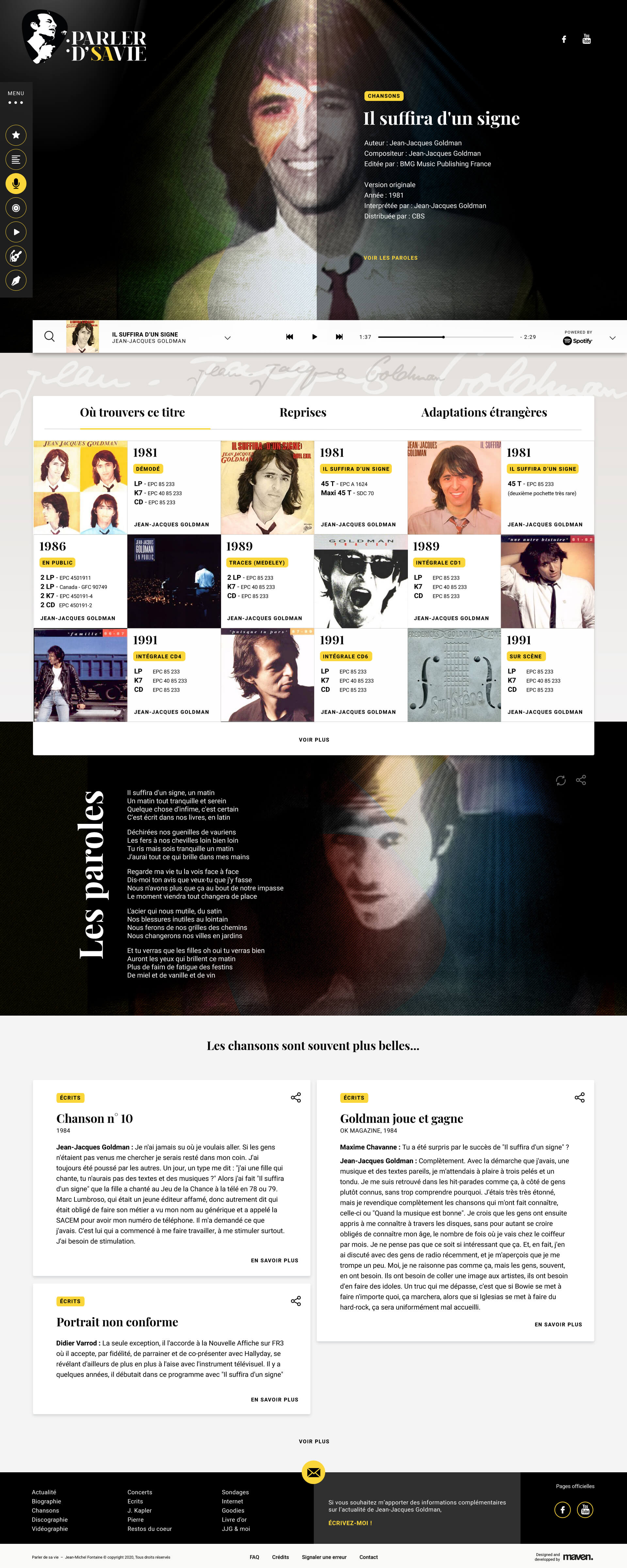 Création de l'identité et refonte UX/UI du plus grand site de références sur Jean-Jacques Goldman.