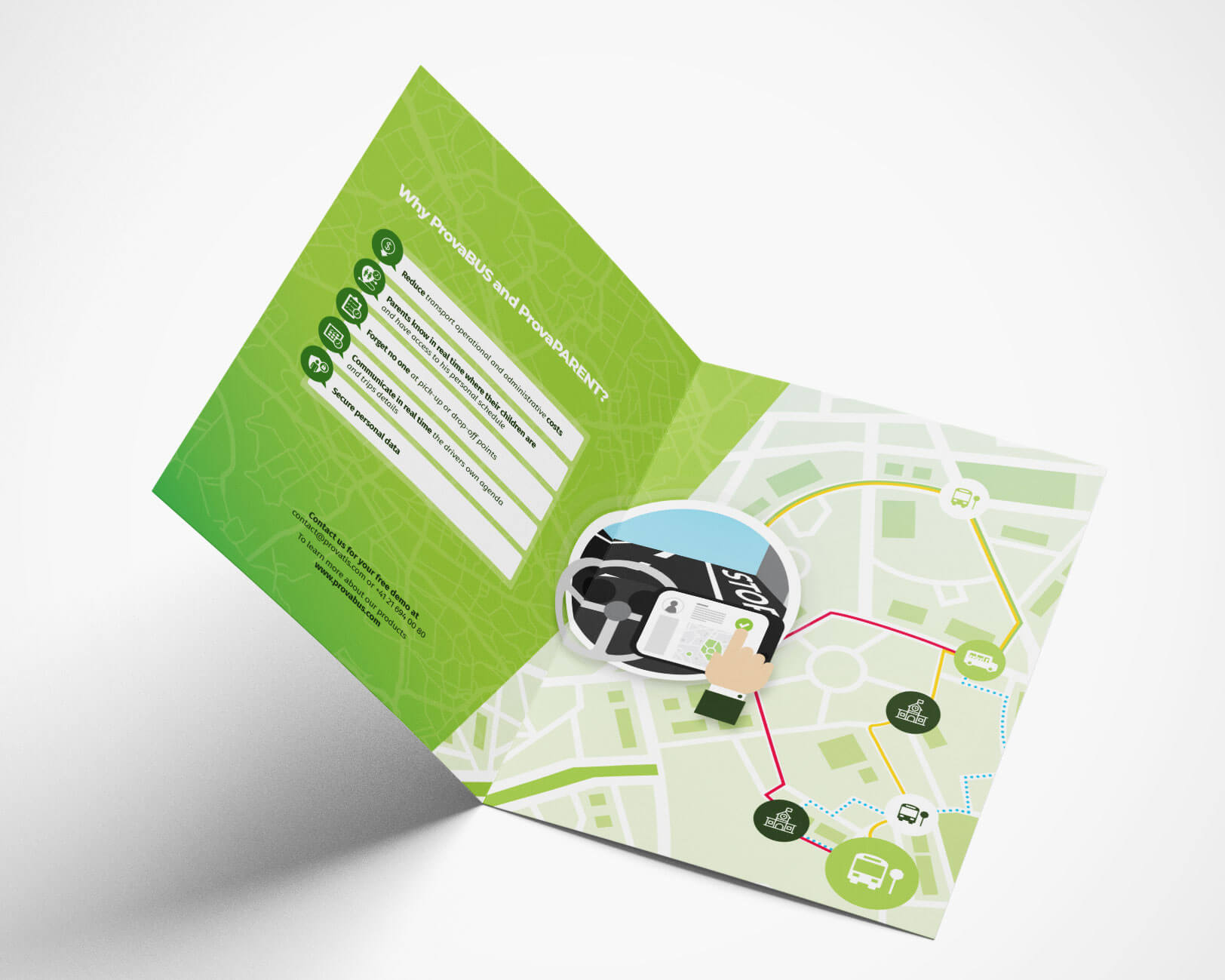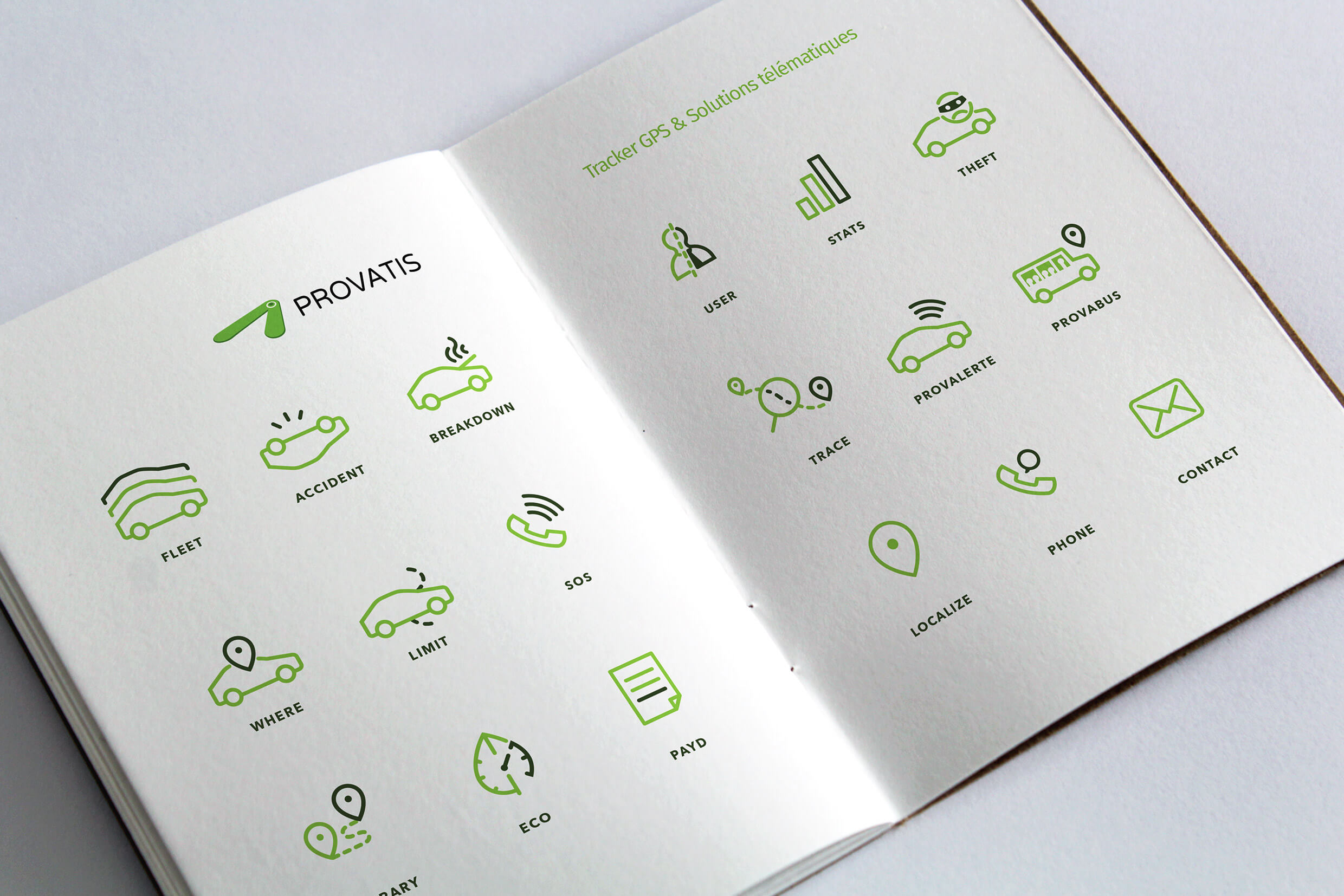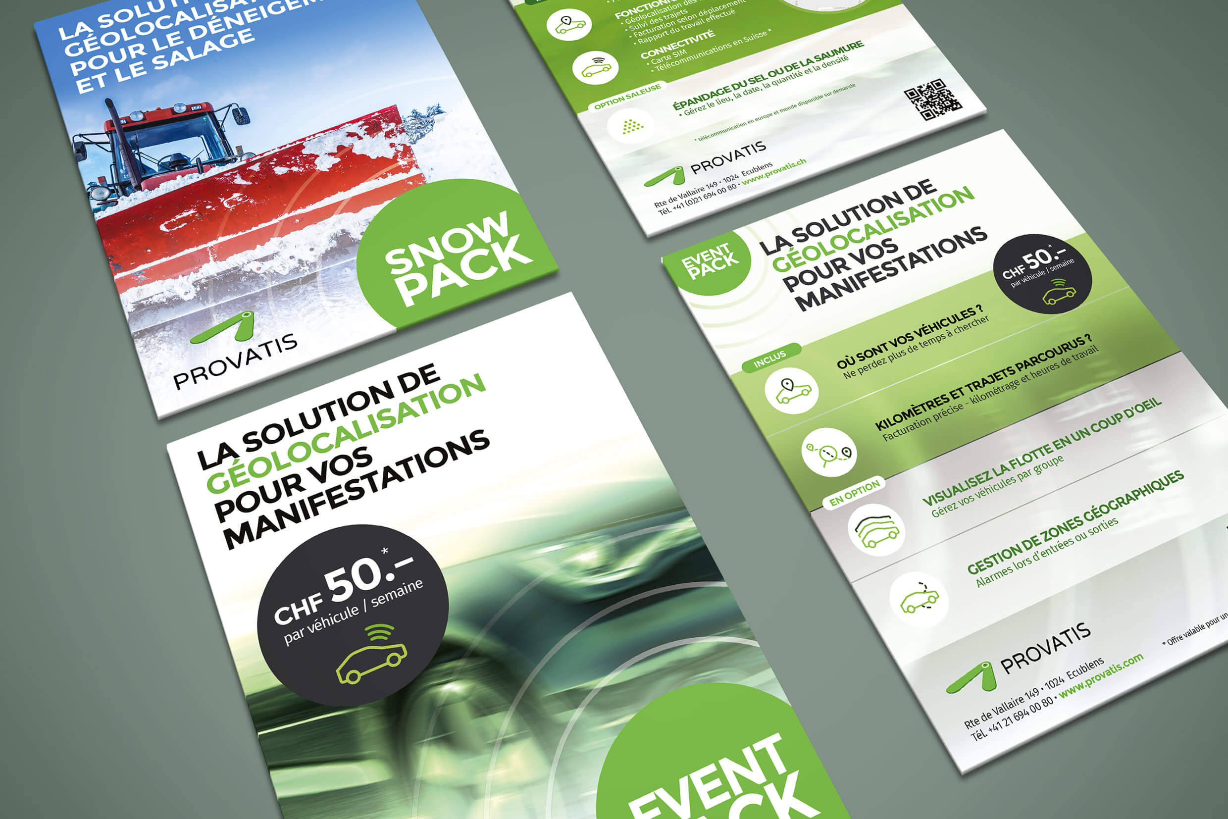 Déclinaison de l'identité visuelle pour une société spécialisée dans la télématique.